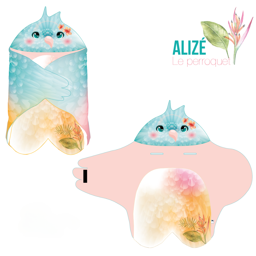 (exemple de dessin exclusif sur le thème du dinosaure. la cliente souhaitait une couverture de voyage dans des coloris vert d'eau et vert prairie)