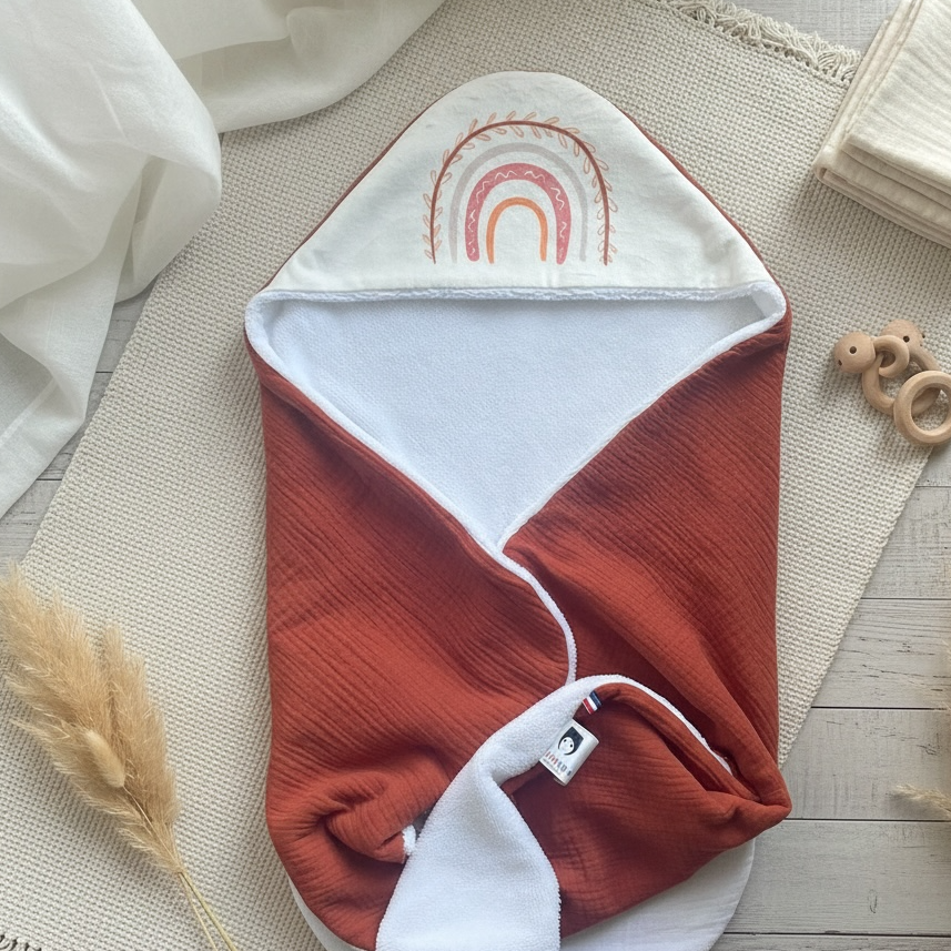 Chaque cape est confectionnée artisanalement en France, avec des matières certifiées oeko-tex, choisies pour leur douceur et leur durabilité. Cette cape de bain bébé bohème est idéale pour les parents en quête de simplicité, de qualité et d’authenticité, ou comme cadeau de naissance utile et durable.