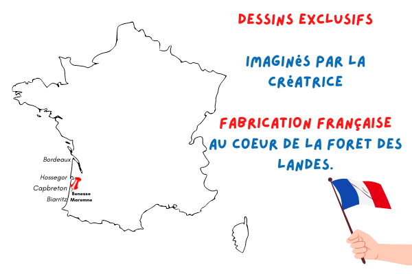 C'est au coeur de la forêt des landes, à quelques kilomètres de l'océan et de la jolie ville de Capbreton que sont imaginées et fabriquées toutes les créations Zakkids.